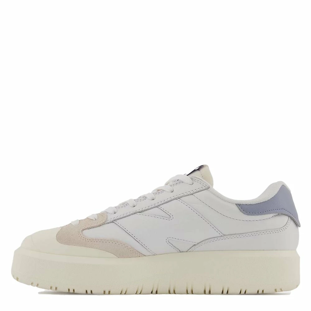 Thanks to its blend of performance qualities and understated, casual elegance, the classic tennis shoe is a timeless style fixture. The CT302 expands the everyday wearability of the classic court silhouette, with an infusion of exaggerated proportions and unexpected details. Using a 1980s on-court model, the CT300, as a launching point, the CT302 adds a stacked height midsole, an outsized take on the classic cup outsole design and ‘N’ logo, and a rubber toe wrap extending from the outsole, along with the use of curved and wavy lines throughout the design.