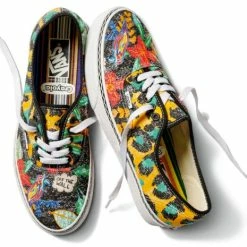Vans x Crayola collection Vans’ original low top shoe Allover print encouraging DIY coloring Lace-up closure Sturdy textile uppers Metal eyelets Signature rubber waffle outsoles.